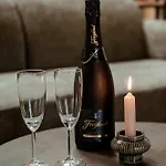 Inredningen inkluderar soffa och arbetsbord samt TV och plattskärms-TV med satellitkanaler. I badrummet finns även en duschkabin, en separat toalett och ett badkar. Torktumlare finns också bland bekvämligheterna i badrummet.